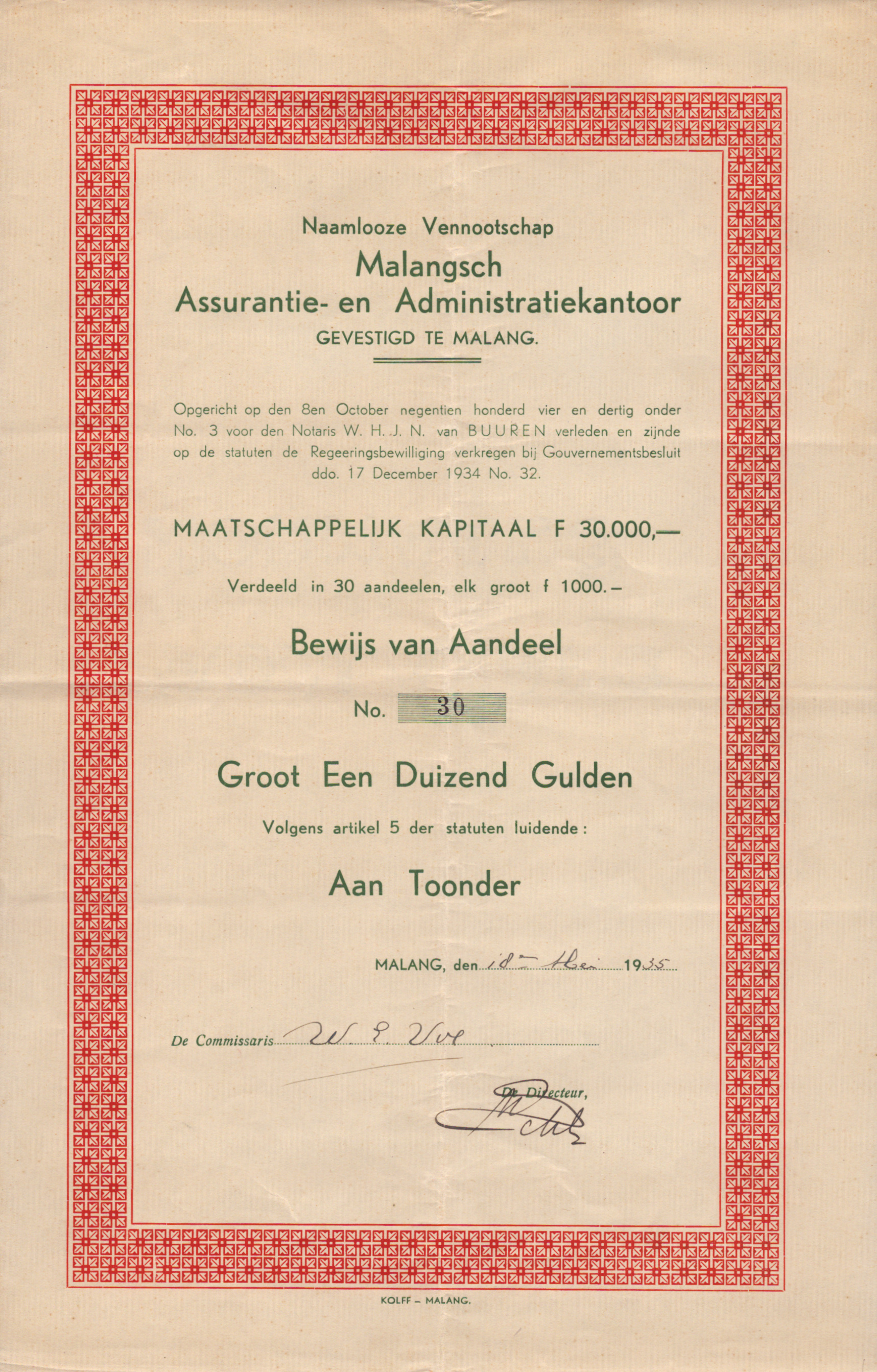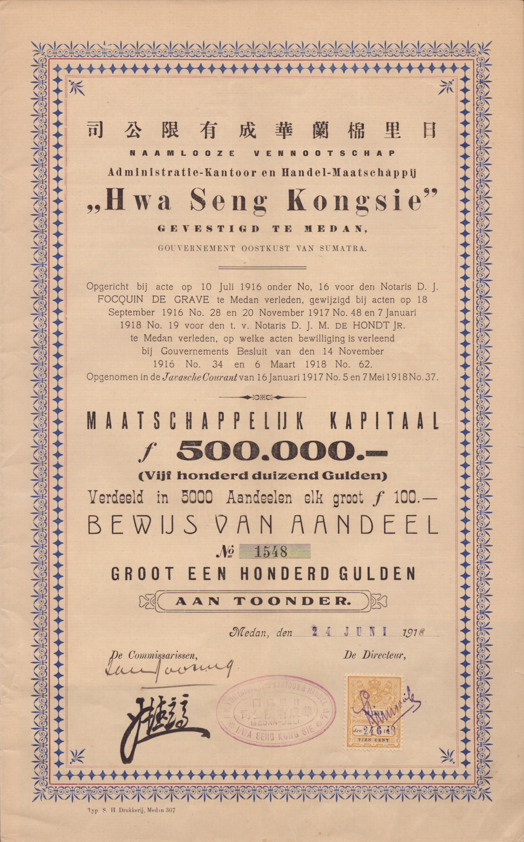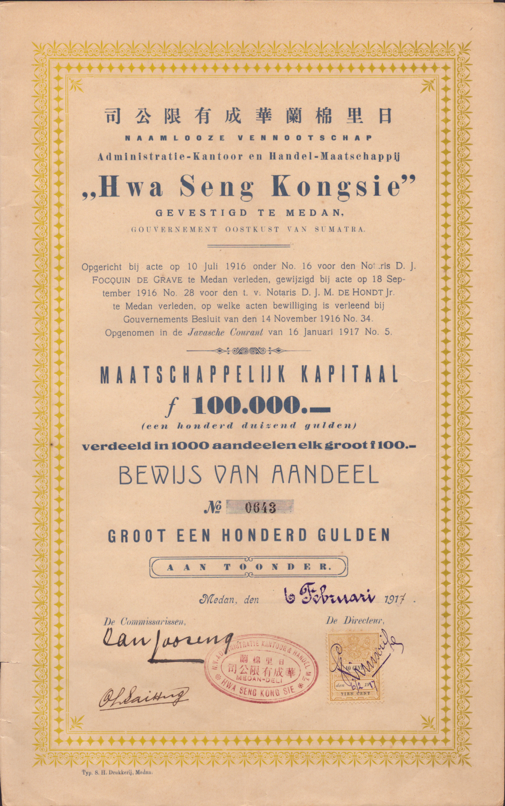 Administratie-Kantoor en .... "Hwa Seng Kongsie"