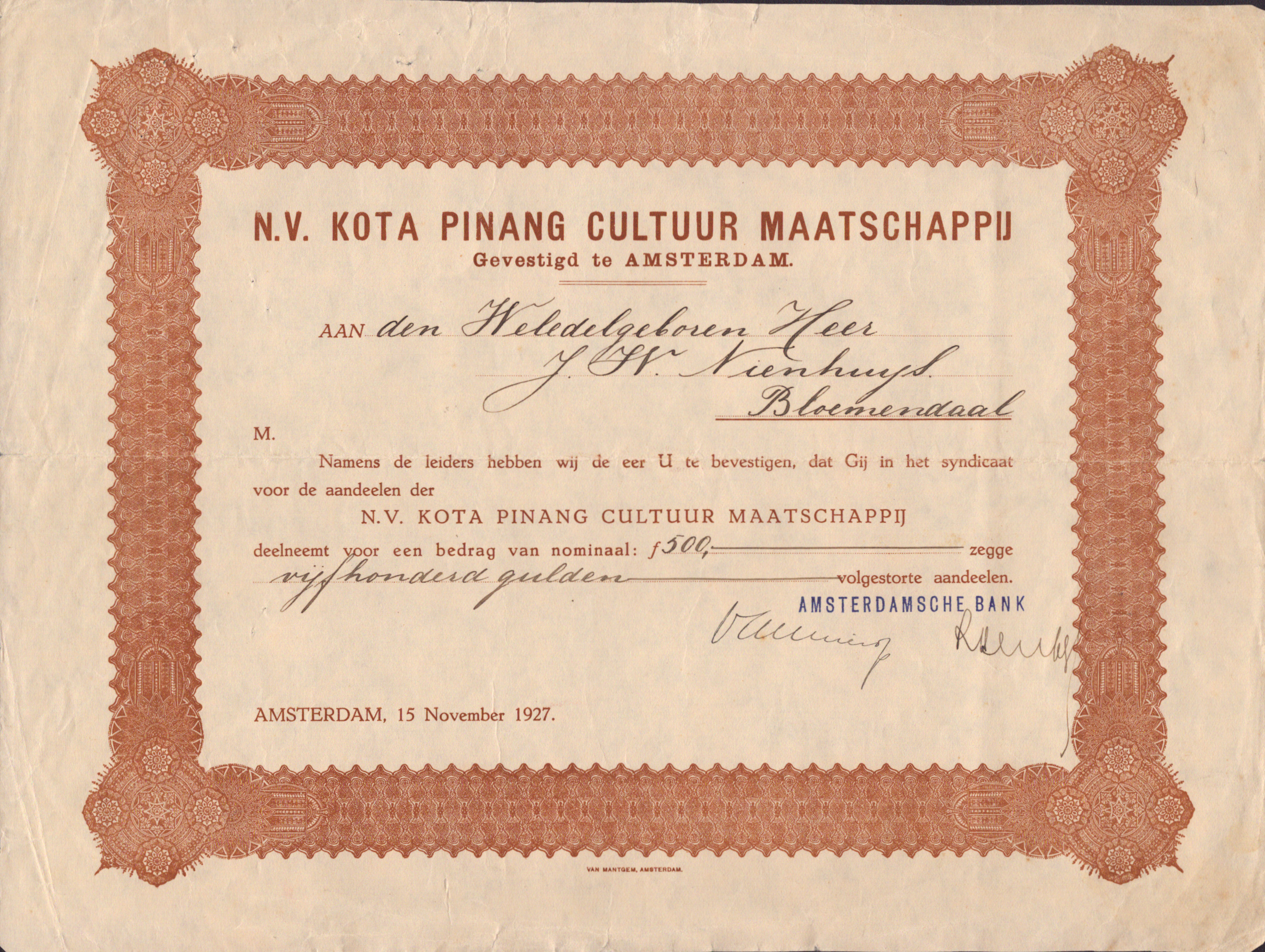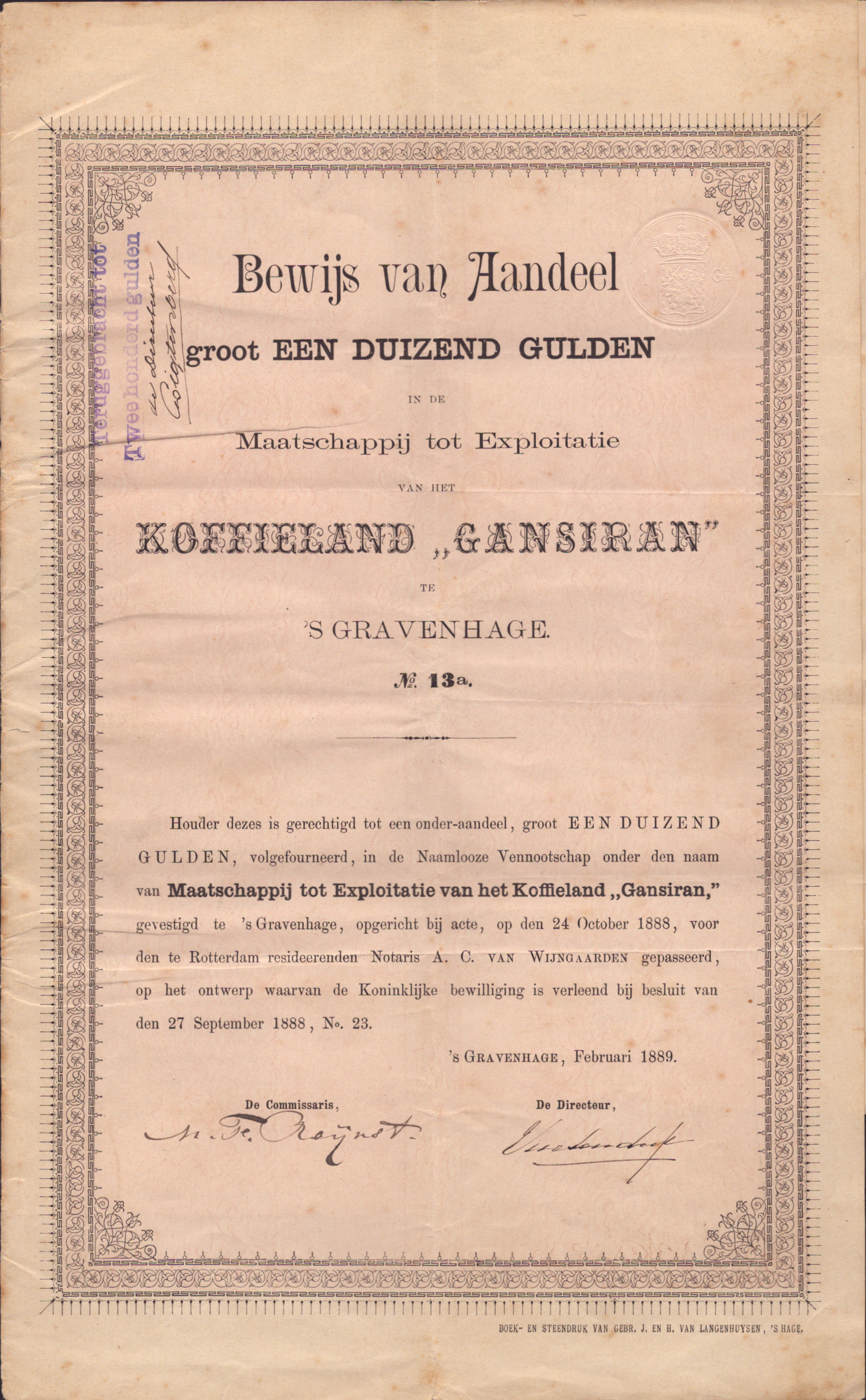 Sumatra Koffie- en Rubber CM "de Westkust"
